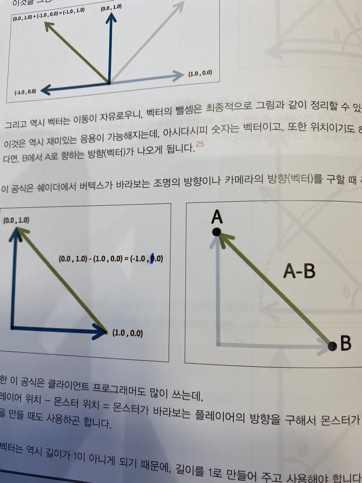 A벡터에서 B벡터를 빼준다면 B->A 로 향하는 방향이 나오게 됩니다.
