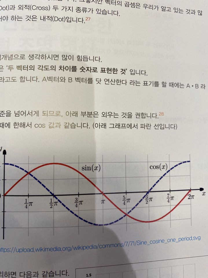 벡터의 곱셈은 내적(Dot)와 외적(Cross) 두 가지 종류가 있습니다. 여기서는 내적에 관련된 이야기만 하겠습니다.