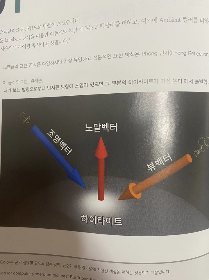 스펙큘러 표현 공식은 다양하지만 가장 유명하고 전통적인 방식은 Phong반사 입니다.